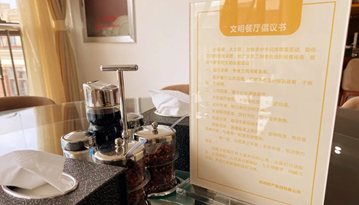 全集團(tuán)要積極傳承中華民族優(yōu)秀飲食文化和尊重勞動(dòng)、珍惜糧食、勤儉節(jié)約的傳統(tǒng)美德,大力弘揚(yáng)勤儉節(jié)約、艱苦奮斗的崇高精神,積極倡導(dǎo)“文明就餐,杜絕浪費(fèi)”的用餐文化,營(yíng)造“節(jié)約光榮、浪費(fèi)可恥”的良好氛圍。