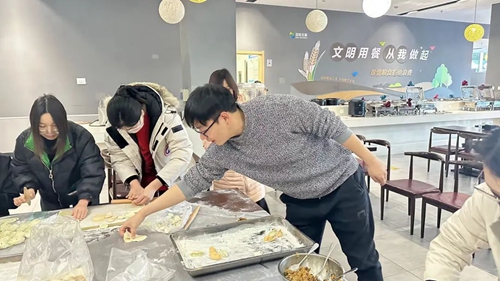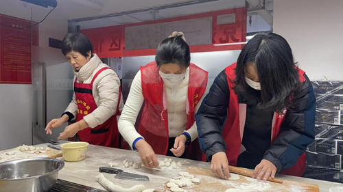 上午,商都控股公司在員工餐廳組織開展了溫馨滿滿的員工包餃子活動。中午,當?shù)谝惠嗭溩又笫旌螅晒军h員和志愿者送給在公司附近忙碌的環(huán)衛(wèi)工人、保安保潔人員等,讓他們也共享冬至熱騰騰的餃子。