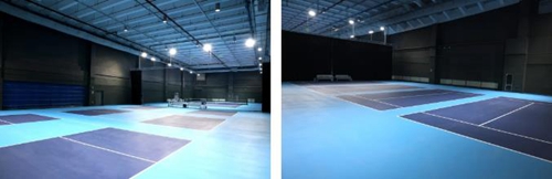 根據(jù)網(wǎng)球球小、球速快的特點,場地照明燈光采用兩側和頂部混合布置的方式,嚴格控制照明水平,以滿足運動中球友們通過視覺掌握球速和運動方向,作出快速反應的要求。