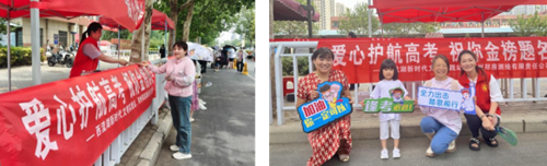 “愛心助考點(diǎn)”服務(wù)站內(nèi),高考專用尺、簽字筆、鉛筆、橡皮等文具整齊擺放,為考生解決不時之需。志愿者們身著統(tǒng)一服裝,手拿“逢考必勝”“加油,你一定可以”“全力出擊 踏歌前行”等祝福手卡,用微笑表達(dá)對高考學(xué)子的祝福。