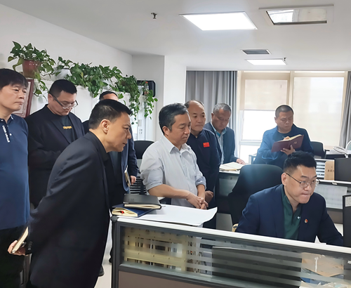 張振明一行首先觀看了房產測繪成果制作、企業端數據推送等線上流程演示操作,實地考察了房產測繪管理與樓盤表“一件事”業務運轉現狀,聽取了鄭房測繪公司就系統升級、兼容測繪軟件成果、解決系統接口適配等問題提出的建議。