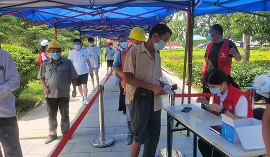 由于龍湖社區(qū)內(nèi)工地數(shù)量多,人員流動性大,檢測人群普遍年齡偏大,給檢測工作著實帶來一定難度。尤其是有一位工友,左腿受傷骨折,打著石膏拄著拐杖來做檢測,他沒有拿身份證且隨行人員都不會熟練操作手機掃碼,但在志愿者的引導(dǎo)下,從帶領(lǐng)他走愛心通道、到協(xié)助錄入信息、幫助他們?nèi)私仄亮舸嬉约白罱K完成檢測,志愿者認(rèn)真的工作態(tài)度得到了工友和社區(qū)工作者的高度贊揚。檢測期間,志愿小隊統(tǒng)一按照社區(qū)的調(diào)度安排,各司其職,專人專崗,一切行動聽指揮,做到了各環(huán)節(jié)專人負(fù)責(zé)和快速反饋,整體檢測工作快速有序的進(jìn)行,僅在15日一天,社區(qū)就完成了4000余人次的檢測。來自龍湖社區(qū)的居民表示,第四次核酸檢測相較于前幾次效率明顯提高且秩序良好,從最初的半個小時以上到現(xiàn)在的幾分鐘,這不僅是效率質(zhì)變,更是廣大一線工作人員的付出心血,大家都非常感謝他們。